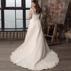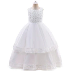 Avec une jupe blanche composée de couches de tulle s’entendant pour obtenir cette silhouette volumineuse, vous possèderait une allure royale digne des princesses. Le bustier ainsi que les manches longues sont composés de soie et de dentelle douce avec différents motifs floraux.